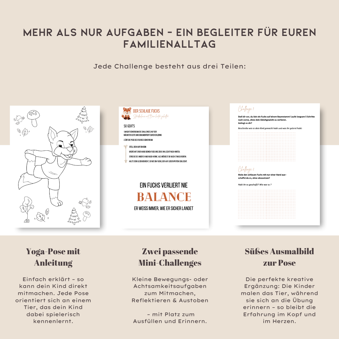 Meine Tochter liebt die Tiere, ich liebe die Ruhe, die wir dadurch haben. Die Challenges sind so alltagstauglich – und trotzdem richtig wertvoll. Man merkt, dass das Buch von einer Mama gemacht ist.