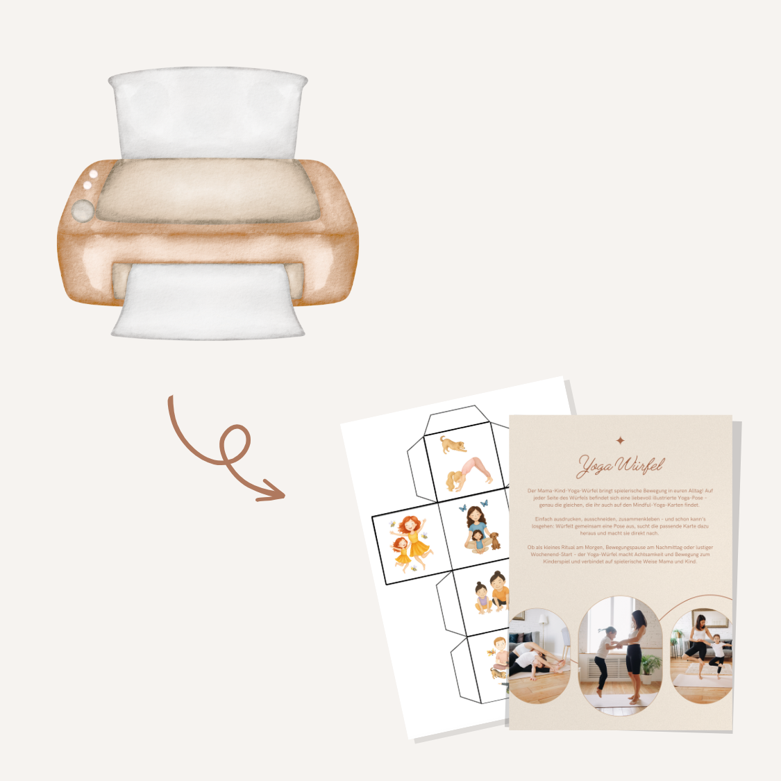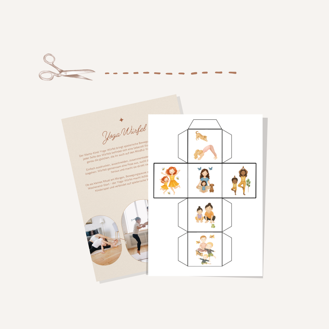 Der Yoga-Würfel ist eine Bastelvorlage zum Ausdrucken mit 6 kindgerechten Yoga-Posen – liebevoll illustriert und identisch mit denen aus den Mindful-Yoga-Karten. Einfach ausschneiden, kleben und direkt gemeinsam loswürfeln.